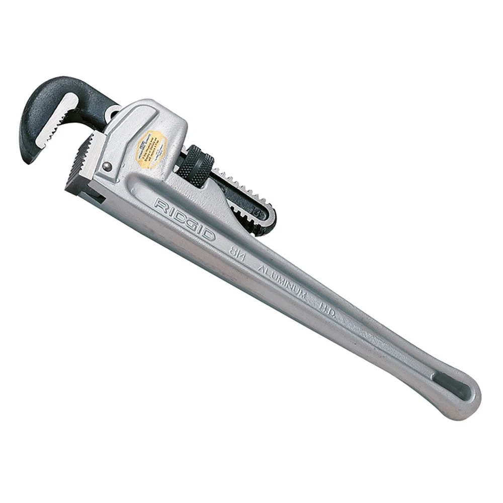 The RIDGID Aluminium Straight Pipe Wrench has the same strength and durability as other RIDGID heavy-duty wrenches but are made from lightweight aluminium. These are nearly 40% lighter than the cast-iron wrench of the same size. The jaws are identical to the RIDGID heavy-duty wrenches.